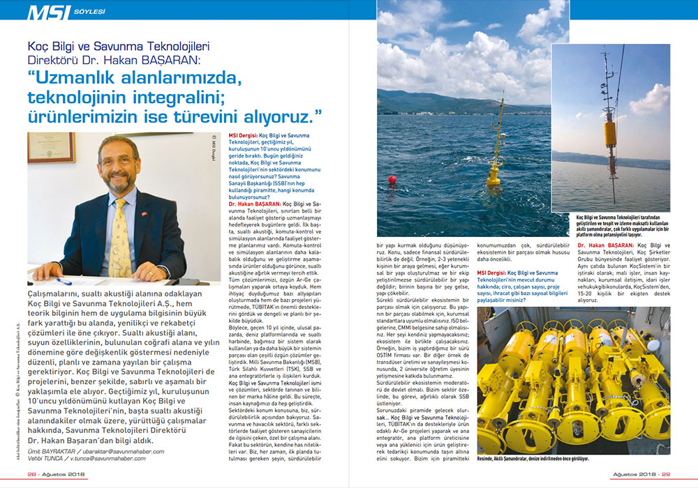 Acoustic Detection and Monitoring System of KoçSavunma Featured in 198th Issue (September 2020) of MSI TDR