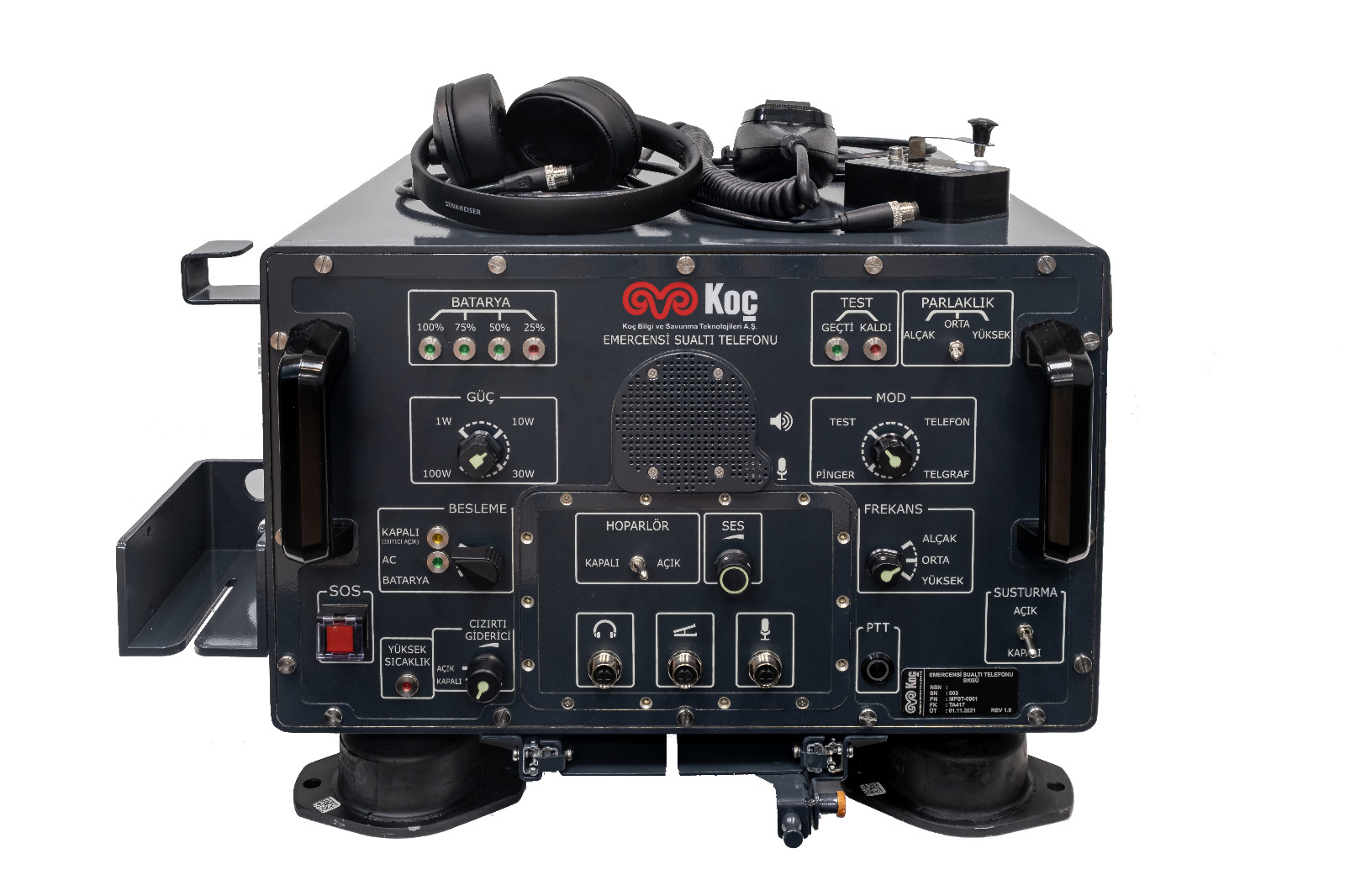 Deniz platformları elektronik sistemleri ve özellikle sualtı akustik alanlarında Ar-Ge’ye dayalı milli ve yerli ürünler geliştiren Koç Bilgi ve Savunma Teknolojileri A. Ş. (KoçSavunma), PREVEZE Sınıfı Denizaltı Yarı Ömür Modernizasyonu (YÖM) Projesi altında geliştirdiği Denizaltı Acil Durum Sualtı Telefonu (EUT – Emergency Underwater Telephone) Sisteminin Fabrika Kabul Testlerini (FAT) 20-22 Aralık 2021 tarihleri arasında gerçekleştirdi! PREVEZE Sınıfı Denizaltı YÖM Projesi altında modernize edilecek ilk denizaltı olan TCG Sakarya (S-354) Denizaltısına takılacak Denizaltı Acil Durum Sualtı Telefonu Sisteminin önümüzdeki günlerde teslim edilmesi bekleniyor.